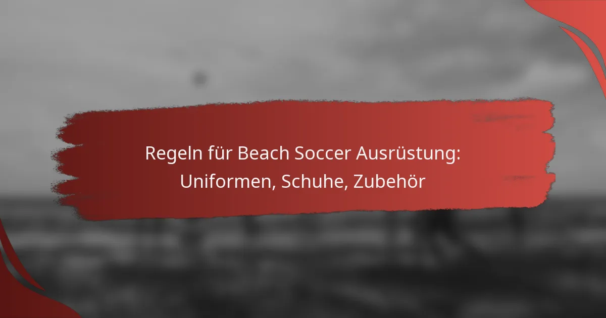 Die Ausrüstung für Beachsoccer unterliegt spezifischen Regeln, die Uniformen, Schuhe und Zubehör betreffen, um ein professionelles Erscheinungsbild und die Sicherheit der Spieler zu gewährleisten. Die Uniformen müssen den Vorschriften bezüglich Design und Branding entsprechen, während die Schuhwahl zwischen spezialisierten Schuhen und Barfußspiel variieren kann. Darüber hinaus dürfen die Spieler bestimmte Zubehörteile tragen, die die Leistung verbessern, sofern sie den Sicherheitsstandards entsprechen, um Fair Play zu gewährleisten.