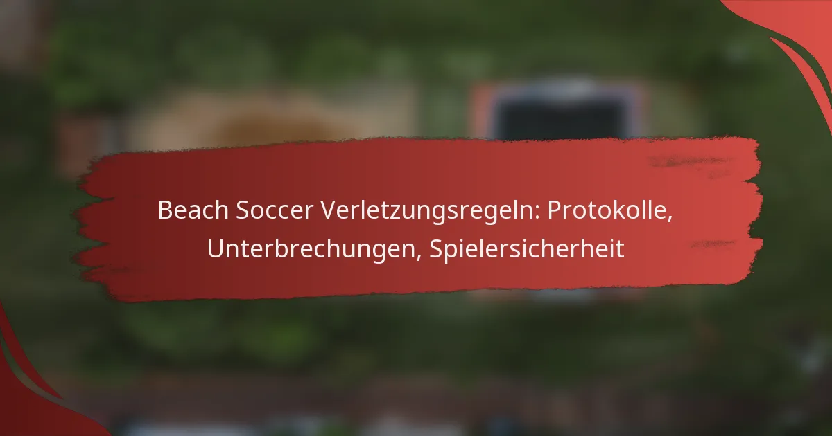 Im Beachsoccer sind Verletzungsprotokolle entscheidend, um die Sicherheit der Spieler zu gewährleisten und eine effektive Verletzungsbewältigung während der Spiele zu ermöglichen. Diese Richtlinien umfassen Bewertungsverfahren, medizinische Interventionen und Kriterien für die Rückkehr ins Spiel, die alle darauf abzielen, eine sichere Spielumgebung aufrechtzuerhalten. Darüber hinaus werden Unterbrechungen aufgrund von Verletzungen von den Schiedsrichtern sorgfältig verwaltet, um die Integrität des Spiels zu wahren und gleichzeitig das Wohl der Spieler zu priorisieren.